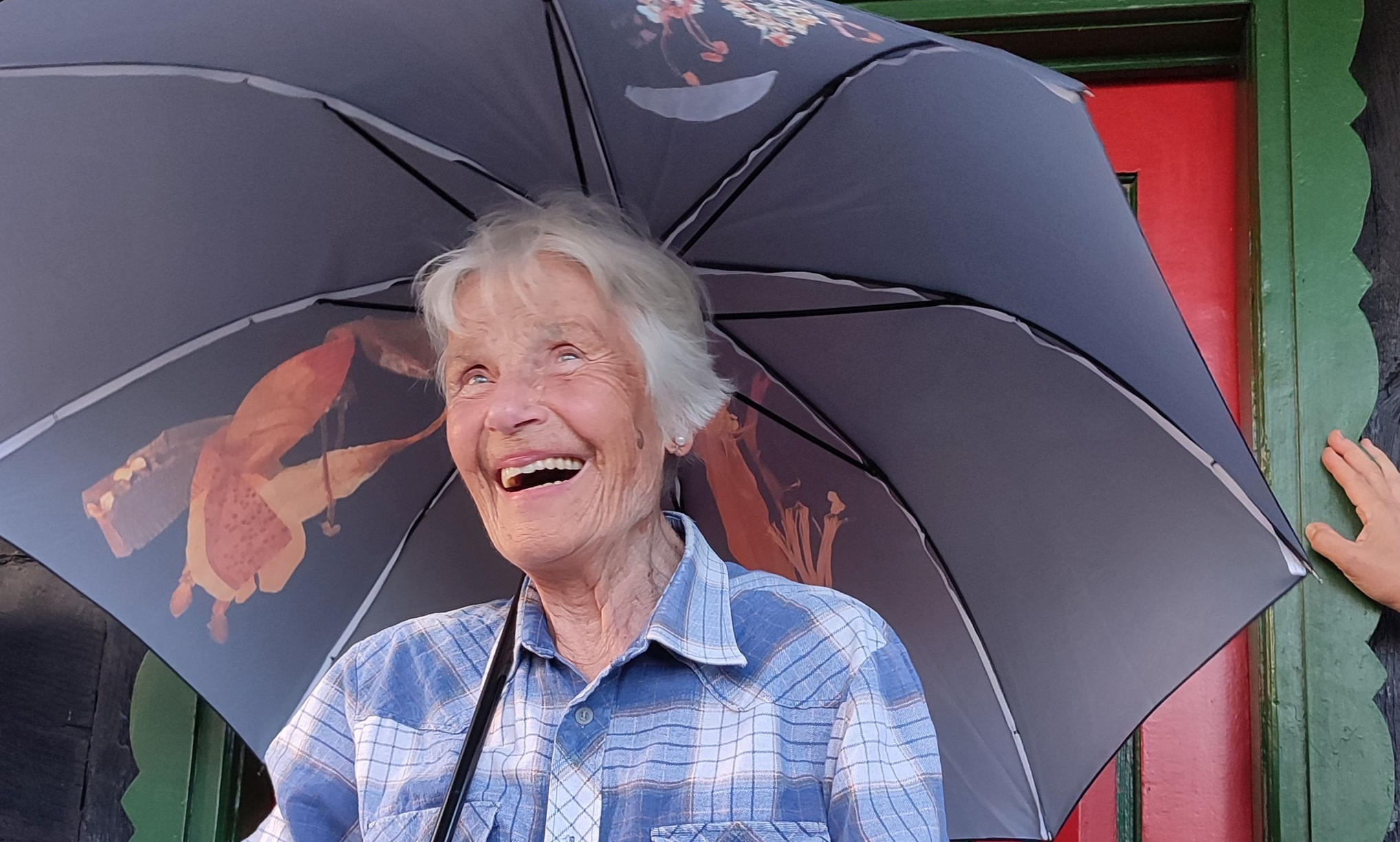 The toMAgo umbrella is an umbrella whose surface features enlarged toMAgo images. The umbrella’s base color is either dark or